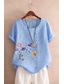 Chemise Femme Chemise en Lin Blouse Florale Linique Vintage Décontractée Manches Courtes Col Ronde Hauts Réguliers Quotidien Sortie Boutons Bleu Clair Été Printemps