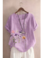 Blouse en coton et lin pour femmes Boutons Imprimé Floral Graphique Stylée Décontractée Manches courtes Col rond Tops réguliers Quotidien Sortir Blanc Rose Violet Marron Vert Été Printemps
