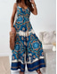 Femmes Normal Combinaison Actif Graphique Sans manches Jambe large Col en V Taille haute Vacances Quotidien Coupe régulière bleu marine Bleu Abricot Été