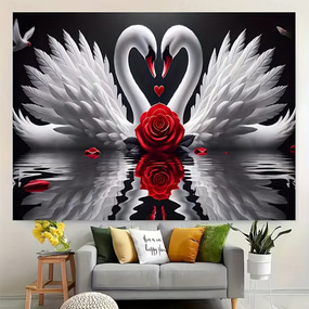 Saint Valentin tapisserie Bannières Couverture Amour Cygne Mignon Romantique 3D Soirée Salon Arrière-plans de prise de vue Décoration pour demande en mariage Décoration d'intérieur