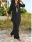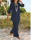 Femmes Chemise Coton mélangé Ensembles inspirés du lin Demi Manches Col en V Couleur Unie Cordon de serrage Actif Basique Fête Décontracté Quotidien Noir Rose Claire Vert Été Coupe régulière