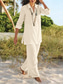 Femmes Chemise Ensembles inspirés du lin Ensembles deux pièces Pantalons à Jambes Larges Manche 3/4 Col ras du cou Uni Mode Streetwear Quotidien Occasionnel Quotidien Noir Blanche Vert Véronèse