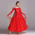 Robe de danse de salon pour femme, asymétrique, volantée, manches longues, tenue de compétition latine, tango, valse – rouge
