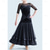 Robe de danse de salon pour femmes, manches mi-longues, maille, valse, tango, pratique latine, compétition, performance, élégante, jupe en mousseline noire superposée