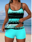 Maillot de bain femme tankini 2 pièces shorts dos nu vacances plage graphique géométrique décolleté en U sans manches