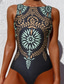 Maillot de bain une pièce pour femmes amincissant monokini à haute coupe sans dos contrôle du ventre taille haute mince vacances vintage graphique géométrique en U sans manches