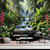 Tapisserie murale représentant un paysage naturel, une cascade et une grotte, idéale pour décorer un salon ou une chambre.