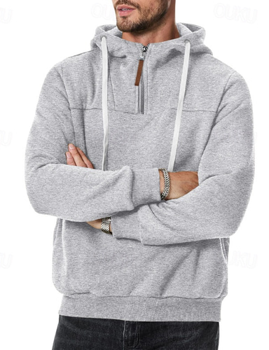 Homme Sweat à capuche Sweat à capuche quart zippé Noir Vert Véronèse bleu marine Kaki Gris Clair À capuche Uni Avec Poches Cordon de serrage Sport & Loisir Quotidien Fête Polyester Streetwear Basique