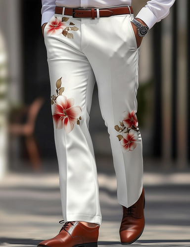 Homme Floral Dress Pants works Taille Moyenne Mode Occasionnel Extérieur Maison Tenue Quotidienne Fermeture éclair Avec Poches Pantalons à jambes droites Été Printemps Automne Impression 3D Blanche