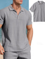 Homme Chemises Polo Gaufre Texturé Occasionnel Fête Revers Col Polo Côtelé Manche Courte Mode Basique Uni Boutons Flexible Été Printemps Coupe régulière Gris argenté Jaune clair Blanc vanille Rouge