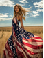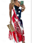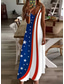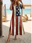 Robe maxi féminine patriote pour le jour de l'indépendance - robe en A - robe à glissière - vacances - décontractée - sortie - ajustement régulier - graphique - drapeau - sans manches - col en V -