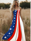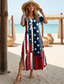 Robe maxi patriotique pour la Journée de l'Indépendance pour femmes robe en A décolleté dénudé vacances décontractée soirée rue coupe régulière graphique drapeau sans manches encolure carrée encolure