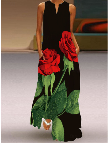 Femmes Robe Longueur Genou Robe Fleurie Élégant Extérieur Plage Vacances Coupe régulière Motif fleuri Sans manches Col ras du cou Fleur Noir Rouge Foncé Rose Claire Printemps