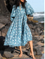 Femmes Robe maxi Robe d'Été Robe trapèze Vacances Occasionnel Boho Plage Sortir Coupe Ample Fleuri Graphique Géométrique manche longue Col en V Bleu Roi Vert Kaki Beige Été Printemps