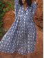robe longue femme robe maxi robe décontractée robe trapèze robe fleurie robe d'été robe bohème vintage vacances quotidien coupe classique floral manches longues col V bleu été