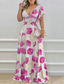 Femmes Robe Longue Maxi Robe Robe de Cocktail Robe Fleurie Robe Imprimée Mode Moderne Extérieur Vacances Fête Coupe régulière Fleur Manche Courte Col en V Bleu Orange Rose rouge Été