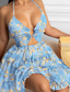 Femme Mini robe Robe ethnique Robe d'été Robe à col licou Robe imprimée Ethnique Tribal Extérieur du quotidien Sortie Standard Floral Tribal Sans Manches Dos nu Bleu Eté Printemps