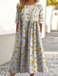 Femmes Robe maxi Robe d'Été Robe trapèze Vacances Occasionnel Boho Plage Sortir Coupe Ample Fleuri Graphique Géométrique Manche Courte Col en V Bleu Marron clair Bleu Ciel Grise Été Printemps