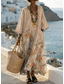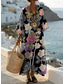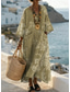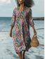 Femmes Robe maxi Robe fourreau Vacances Occasionnel Boho Extérieur Plage Sortir Coupe Ample Fleuri Graphique manche longue Col en V Gris vert Noir Marron clair Été Printemps