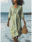 Femmes Robe Longueur Genou Robe Chemise Robe Décontractée Robe d'été Élégant Bohème Vacances Plage Coupe Ample Fleuri manche longue Col en V Col de chemise Bleu Jaune Vert Claire Vert Été Printemps