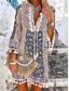 Femme Mini robe Robe casual robe boheme Bohême Rétro Vintage Ethnique Vacances du quotidien Standard Floral manche longue Col V Bleu Eté Printemps