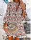 Femme Mini robe Robe casual Robes bohème chic robe boheme Bohême Le style mignon mode Vacances du quotidien Plage Ample Graphic manche longue Col V Rouge Vert Printemps Automne