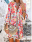 Femme Mini robe Robe casual robe boheme Bohême Rétro Vintage Décontractées Vacances du quotidien Standard Floral Manches 3/4 Col V Fuchsia Orange Vert Printemps Automne