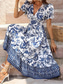 Femme Normal Robe Maxi Robes bohème chic robe boheme Bohême Vacances Plage Standard Graphic Manche Courte Col V Bleu Eté
