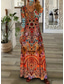 Femme Robe Maxi Robe casual Robes bohème chic robe boheme Bohême Le style mignon mode Vacances du quotidien Plage Ample Graphic manche longue Epaules Dénudées Orange Eté Printemps