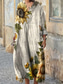 Femme Robe Maxi Robe casual Robe Évasée Robe Trapèze robe boheme Décontractées du quotidien Standard Floral Manches 3/4 Col V Noir Vert Abricot Eté Printemps Automne
