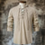 Homme Chemise Style Viking Chemise d'été Tenue de plage Chemise de pirate Couleur Unie Vacances Rue Noir bleu marine Kaki manche longue Col montant Été Printemps Vêtement Tenue Cordon de serrage