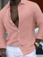 Homme Chemise en coton et lin Uni Vacances Tenue quotidienne Noir Blanche Rose Claire Bleu Roi manche longue Col de chemise Printemps & Automne Vêtement Tenue Boutonné