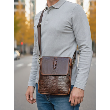 Sacoche de luxe pour homme en cuir embossé crocodile - sac bandoulière vertical multicolore pour le bureau, le travail et le quotidien