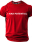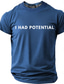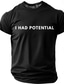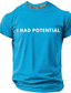 T-shirt graphique minimaliste pour homme « J'avais du potentiel », avec une citation humoristique et sarcastique. Coupe classique, idéal pour les enfants surdoués, le burn-out et un style décontracté.