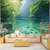 Tapisserie murale représentant une vue sur une forêt, une rivière verte, des rochers moussus et un paysage naturel, idéale pour la chambre, le salon ou la décoration intérieure.