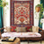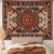 Tapisserie murale vintage de style persan avec vase floral, roses rouges et oiseaux, motif tapis oriental, décoration bohème chic pour salon ou chambre.