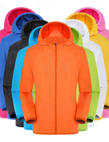Imperméable de randonnée imperméable pour femme et homme UPF 50+ protection solaire UV sweat à capuche zippé à manches longues pêche course veste coupe-vent été extérieur coupe-vent crème solaire
