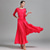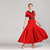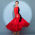 Robe de danse de salon pour femme, manches mi-longues, en dentelle, pour valse, tango, foxtrot, compétition, entraînement – rouge