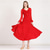 Robe de danse de salon rouge à volants pour femme - Robe trapèze à manches longues pour compétitions, danses latines et événements de danse