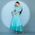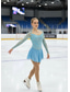 Robe de danse de salon pour femme, manches longues, en maille et dentelle, tenue de compétition, de valse, de tango, élégante et fluide, bleu clair