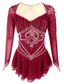 Robe de patinage artistique Femmes Fille Patinage Robe Rouge Bordeaux Patchwork Dos Nu Maille Spandex Haute Élasticité Entraînement Compétition Tenue de Patinage Classique cristal pailleté manche