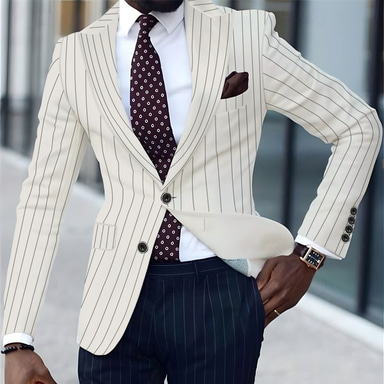 Homme Remise de diplôme Blazer Affaires Cocktail Fête de mariage Mode Occasionnel Printemps & Automne Polyester Rayures Avec Poches Boutons Confortable Simple Boutonnage veste Noir Blanche Jaune Rose
