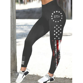 Femmes Pantalons Leggings Vacances Streetwear Basique Longueur complète Taille hautePantsJour de l'Indépendance américaine Graphique Drapeau Américain Taille Élastique Imprimé Confort Respirabilit