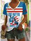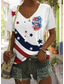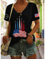 Jour de l'Indépendance Américaine Femmes Chemisier Imprimé Drapeau Occasionnel Manche Courte Col en V Hauts Réguliers Quotidien bleu marine Kaki Rouge / Bleu Bleu clair Été Printemps