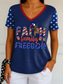T-shirt patriote pour femmes jour d'indépendance imprime graphique drapeau vintage tendance classique manches courtes encolure en V tops réguliers quotidiens bleu beige clair noir blanc rose été