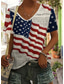 Jour de l'Indépendance Américaine Femmes T-shirt Imprimé Graphique Drapeau ancien Élégant Classique Manche Courte Col en V Hauts Réguliers Quotidien Bleu Noir Blanche Rouge Été Printemps