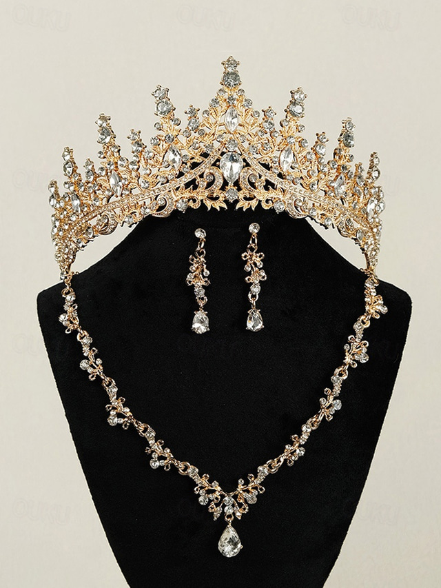Ensemble couronne et collier de diadème en diamant étincelant – bijoux de mariée plaqués or avec boucles d'oreilles, parfait pour les mariages, les concours et les occasions spéciales de 2026 ? US $18.99 –P5