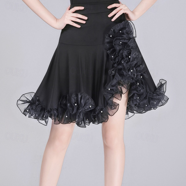 Pour: Femmes, Style: Élégant, Élégant, Occasion: Entraînement, Performance, Catégorie: Danse de Salon, Danse Latine, Tissu: Polyester, Décoration: Tulle, Épissage, Volant, Couleur unie, Type de Taille: Haut, Conseils: Jupe Seulement, Groupe d'âge: Adultes, Adulte, COLLECTIONS TENDANCES: Jupes, Contenu: Jupes,