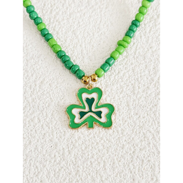Collier trèfle pour femme en alliage et acrylique avec plusieurs styles de pendentifs, perles vertes, parfait pour la Saint-Patrick et au quotidien de 2026 ? US $7.99 –P10