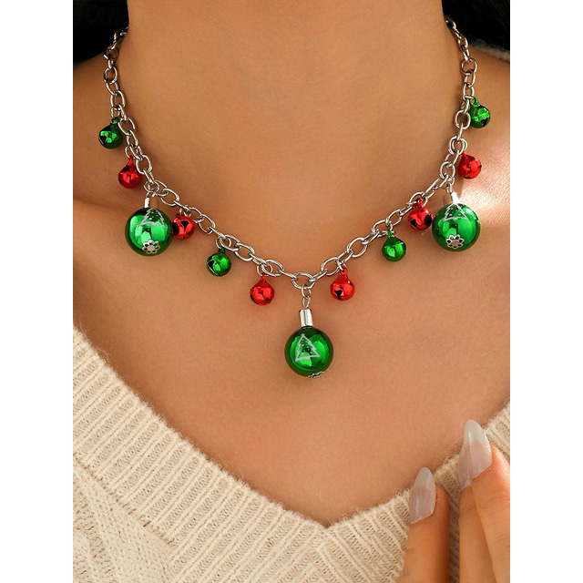 Collier de Noël en alliage pour femme avec cloches rouges et vertes, ornement de flocon de neige, parfait pour la mode des fêtes et les cadeaux festifs